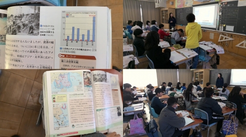 戦争を行ったアメリカと日本との戦力比較の資料を見て考え合っていました。