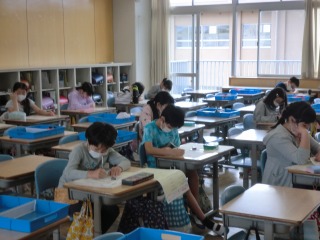 今日で2回ずつの分散登校が終わりました。4年生は一人も休むことなく全員、登校できました。分散登校では、本格的な学校再開にむけての心がまえと根気強く取り組む態度を思い出しました。1回目の分散登校では、まだまだふわついていた子もいましたが、2回目の分散登校では、ひきしまった雰囲気で、課題に取り組んでいました。25日から素敵な1年間になる予感満載です。