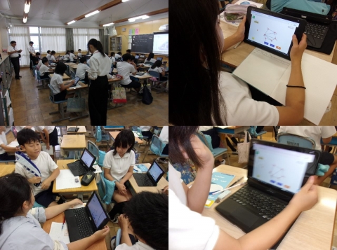 あるグループの学びの様子を見ていて,三角形以外で考えられないかと聞いてみると,すぐに,四角形でもできると帰ってきました。