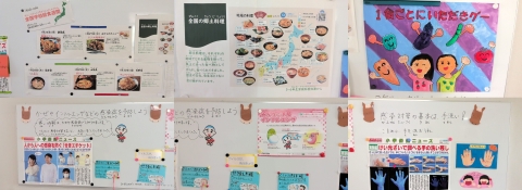 食育については、1月24日から30日は「全国学校給食週間」であること、様々な県の強度料理の紹介などが掲示されています。三重県はてこねずしが紹介されています。