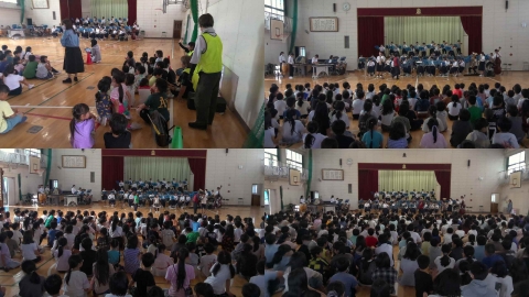 低学年の子どもたちは、途中知っている歌があれば歌いだしたり体を動かせたりしながらか聞いていました。