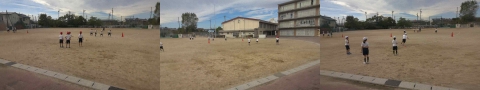 3つのコートをつくり,キックベースのゲームをしました。