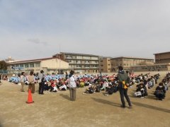 1月26日に予定されていた避難訓練(南海トラフと大津波を想定)が、本日無事にできました。1・2年生は、防災頭巾をつけての初めての訓練でした。700名以上の全校児童が落ち着いて整然と行動することができました。さすが!富田の子!!
