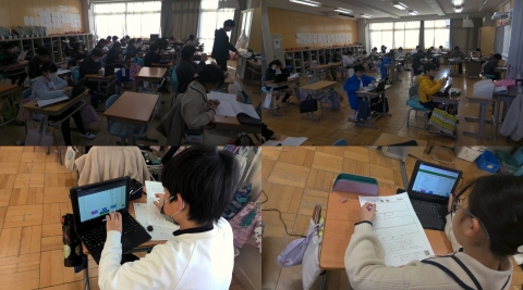 今日は5年生で、1・2組は1・2限目に、3・4組は5・6限目に、みえスタディチェックを行いました。国語と算数の2教科でした。