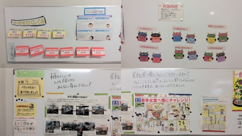 「食育」については、「春巻きができるまで」と苦手な食べ物にチャレンジ」というテーマで掲示がありました。好き嫌いをせずに、なんでも食べましょうというメッセージがこめられています。