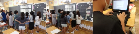 全員が書いた俳句を黒板に貼って,読んでいるところでした。