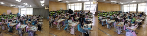 教室に入った瞬間「校長先生,給食おいしい」と元気よく話してくれる子もいました。