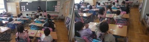 教室に入った時には、前に何人か立っていて、それぞれの子が数字のカードを持っていました。