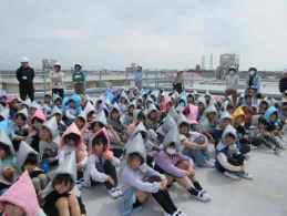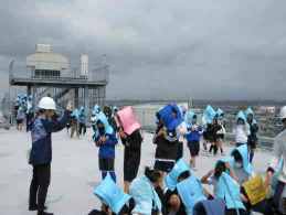 全員の無事を確認した後、津波の発生を想定した訓練として、校舎屋上への避難も行いました。