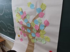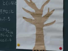 そして最後にそれぞれの葉っぱを木の幹にはり、「世界に一つだけの木」を完成させました。