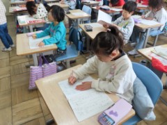 2・3限目は、各学級で宿題を提出したり、係を決めたり、担任の先生からあいさつや学習の大切さの話を聴いたり、レクで楽しんだり、目標や思い出の作文を書いたりして過ごしました。