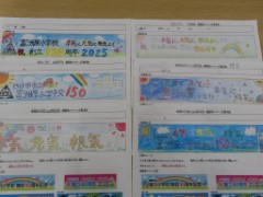 (マスコットキャラクターは1~5年生、横断幕は6年生)