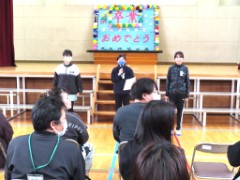 そして、会の終わりに職員全員から6年生へ「トミスハラサンバ」(マツケンサンバの替歌)を