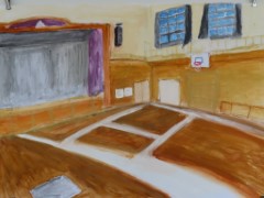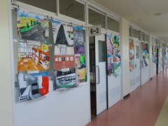 そして、6年生の廊下には図工作品「私のお気に入りの場所」が掲示されています。