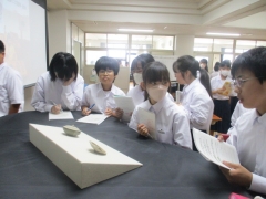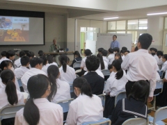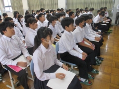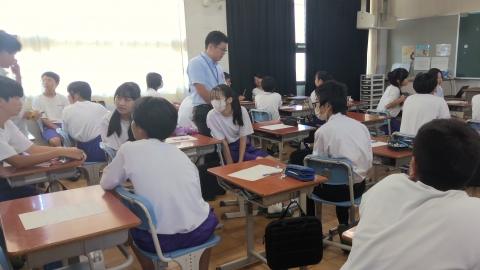 Wednesday, October 8 (Morning) This morning, in each of the 2nd-year classrooms, students are having a lesson on media literacy and human rights. It is a special guest lesson conducted by a researcher from the Mie Institute for Research on Anti-Discrimination and Human Rights.