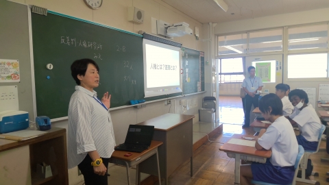 Miércoles 8 de octubre (por la mañana) Esta mañana, en las aulas de segundo grado, se está realizando una clase sobre alfabetización mediática y derechos humanos. Es una clase especial impartida por un investigador del Instituto Mie de Investigación sobre los Derechos Humanos y la Lucha contra la Discriminación.