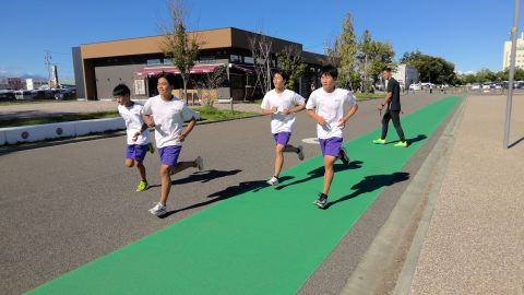 英語(English) On the afternoon of Monday, October 13 (Sports Day), the Ekiden team practiced at the Trim Course in Yokkaichi Central Green Park.