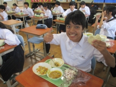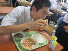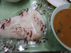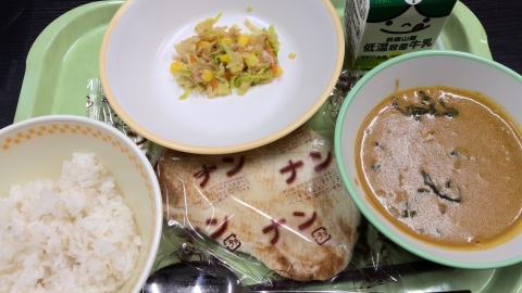 Bữa trưa ngày thứ Năm, 16 tháng 10 gồm có: cơm (giảm khẩu phần), sữa, bánh naan, cà ri gà bơ và salad ngô. Món đáng chú ý là bánh naan. Sau món bánh mì Việt Nam hôm qua, đây lại là một món hiếm trong thực đơn bữa trưa ở trường. Như trong hình, bánh naan được phục vụ trong từng gói riêng. Bạn có thể thưởng thức món cà ri gà bơ cùng với cả cơm và bánh naan.