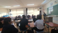 La tarde del miércoles 5 de noviembre, los miembros del Equipo Conjunto de Prevención de Desastres del Distrito de Tomisuahara visitaron la escuela para reunirse con los estudiantes voluntarios de secundaria que participarán en el Simulacro General de Prevención de Desastres. El Simulacro General de Prevención de Desastres del Distrito de Tomisuahara del año fiscal 2025 será organizado por el Equipo Conjunto de Prevención de Desastres del Distrito de Tomisuahara, en coordinación con las instituciones relacionadas, como un entrenamiento comunitario. Se llevará a cabo el domingo 16 de noviembre. Tal como se informó hoy mediante un documento impreso y a través de Home & School, la Escuela Secundaria Tomisuahara participará en este simulacro como parte de las clases del sábado. (El lunes 17 de noviembre será día libre compensatorio.) Habrá 16 estudiantes voluntarios, cuyas funciones incluirán: entrenamiento con camillas de primeros auxilios, exhibición de materiales y equipos de prevención de desastres, aplicaciones de prevención, entrenamiento con extintores de agua, práctica con generadores, visita al almacén de emergencia, demostración de sacos de arena absorbentes de agua, preparación de arroz alfa y anuncios desde la sede central. Hoy se llevará a cabo la distribución de roles y la reunión de coordinación.