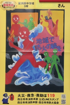 On Friday, October 31, five fire prevention posters were delivered to our school. We were asked to display them on campus in connection with the National Autumn Fire Prevention Campaign, which will be conducted nationwide for seven days from Sunday, November 9 to Saturday, November 15.