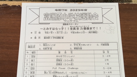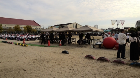 On Sunday, November 2, we visited Tomisuahara Elementary School’s Sports Day together with the members of the Community School Committee. The Sports Day was originally scheduled for yesterday, but it was postponed for one day because the schoolyard was not in good condition due to Friday’s rain. This year, the Sports Day is being held in November, so there is no risk of heatstroke. Today’s weather is refreshing, and the ground is slightly moist, making it a very comfortable day for the event. Many parents and guardians have also come to watch.
