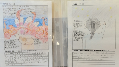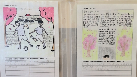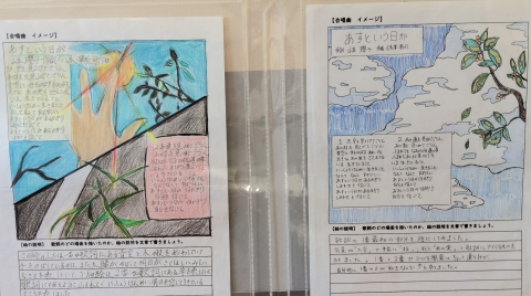 In each grade’s hall, illustrations inspired by the chorus songs are on display. The songs performed by each class are as follows: