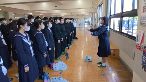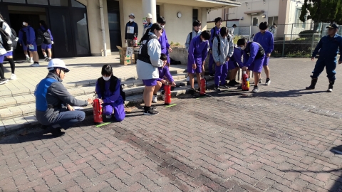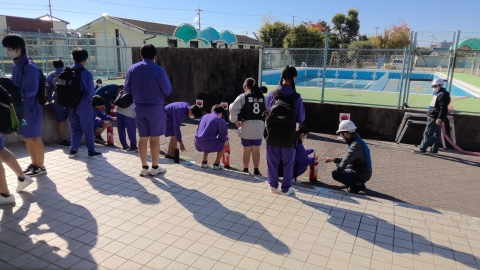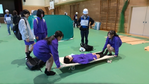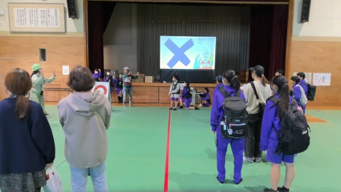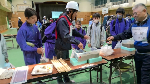 On Sunday, November 16, the Tomisuahara District Comprehensive Disaster Drill was held with full community participation, and Tomisuahara Junior High School took part in the drill as part of its Saturday classes. This year, the school recruited junior high school volunteer staff, and these volunteers helped with preparations early in the morning together with other staff members. General students evacuated to high-ground areas along with local residents at their designated evacuation sites and then gathered at Tomisuahara Elementary School, which served as the main disaster drill site. At the training site, they learned through various hands-on disaster-prevention activities. After this, they will return to school, eat emergency “Alpha Rice,” and then conduct a reflection session on the drill.