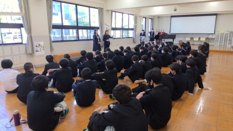 Vào buổi sáng, “Buổi hướng dẫn về học tiếp cho học sinh và phụ huynh người nước ngoài” do Ủy ban Giáo dục thành phố Yokkaichi tổ chức đã được tổ chức tại hội trường đa năng, với sự tham gia của nhiều học sinh.