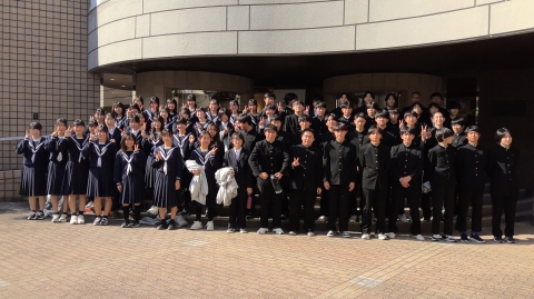 At 12:00 on Friday, November 14, the third-year students who performed at the Sanshi Music Festival returned to Tomisuahara Junior High School. Today was warm and sunny, making the round-trip walk very comfortable. On the way there, I heard some students quizzing each other with social studies questions while waiting at a traffic light. The term-end exams are coming soon, after all. On the way back, I also heard some saying, “I’m hungry,” but they must be enjoying their curry by now. Including moments like these, it will surely be a memorable day for the third-year students. All seven schools delivered wonderful performances that conveyed their passion. The chorus performance by Tomisuahara Junior High School was truly worthy of concluding the morning session. Great job, everyone.