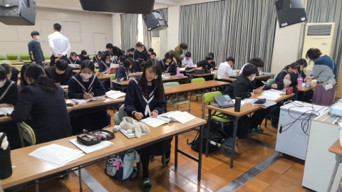 After school on Friday, November 14, many students—including the third-year students who had returned from the Sanshi Music Festival—took part in the study session held in the audiovisual room and were studying diligently. The term-end exams will be held next week for three days, from Wednesday the 19th to Friday the 21st.