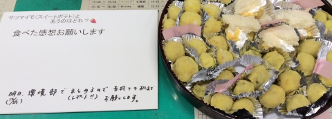 Meanwhile, the environmental club was making sweet potatoes. Unfortunately, the sweet potatoes they had grown themselves did not grow well, so they used ones that were kindly donated by a farm.