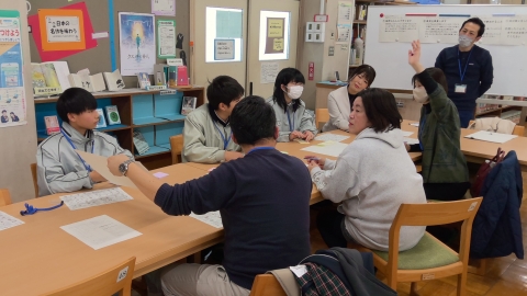 On Thursday, January 29, the 3rd subcommittee meeting of the Tomisuhara Junior High School District Integrated Learning Initiative was held at Tomisuhara Elementary School. Staff members from the childcare center, elementary school, and junior high school were divided into three subcommittees and reflected on their initiatives in relation to the six pillars of the Yokkaichi City New Education Program.
