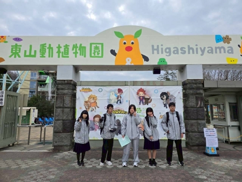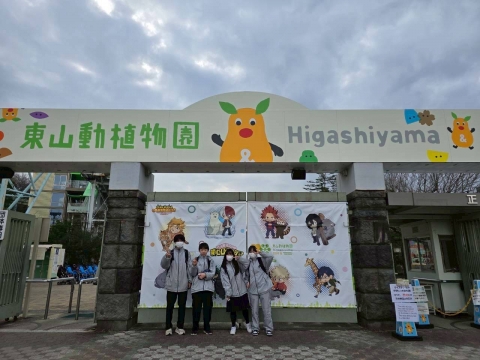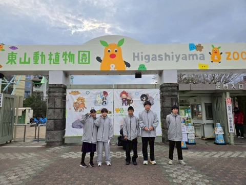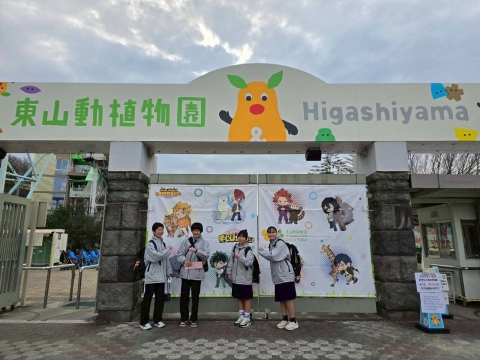 Sáng thứ Hai, ngày 6 tháng 2. Sau khi chuyển từ tuyến Kintetsu Nagoya sang tuyến tàu điện ngầm Higashiyama, chúng tôi đã đến Vườn thú và Vườn bách thảo Higashiyama. Một số nhóm đã đến trước, và tổng cộng có sáu nhóm chọn địa điểm này cho buổi tham quan buổi sáng. Trường THCS Utsube cũng đến sau chúng tôi một chút.