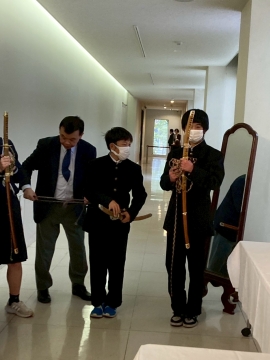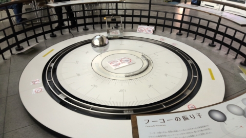Afternoon session of the second-year students’ field trip. Three groups are visiting the Nagoya City Science Museum. After confirming their arrival and coming to the rest area, we found a Foucault pendulum there.