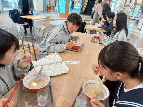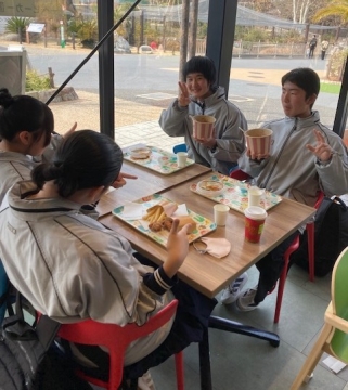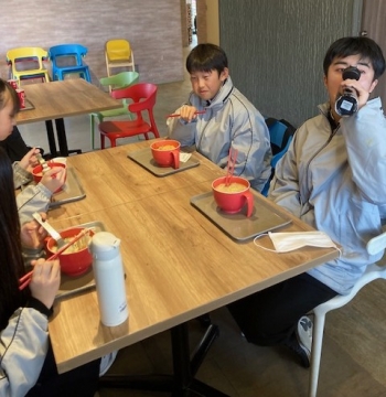 The order is a bit out of sequence, but we have received photos taken during mealtime, so we would like to share them. Many groups are having their meals while traveling from their morning destination to their afternoon destination. Some groups will eat after finishing their afternoon experiential program.