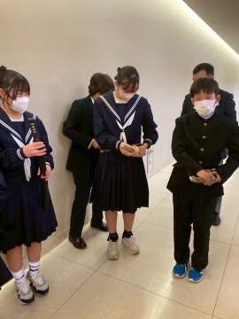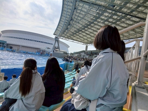 Morning of Friday, February 6. On the second-year students’ field trip, six groups are visiting the Nagoya Port Aquarium. We have been informed that all groups have arrived safely, and photos have been sent from the checkpoint. They most likely transferred to the Subway Meijo Line on the way there.