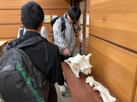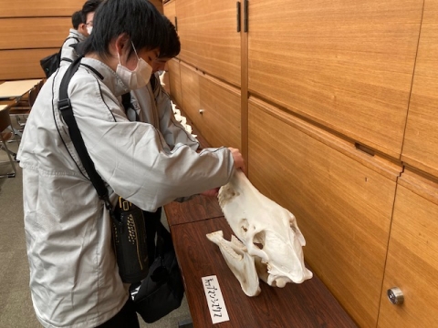 We are participating in the Higashiyama Zoo and Botanical Gardens’ experiential program, “Thinking About Biodiversity at the Zoo,” together with 27 students in six groups. The talk is being given by a veterinarian from Higashiyama Zoo and Botanical Gardens. We learned that biodiversity consists of three types: genetic diversity, species diversity, and ecosystem diversity.