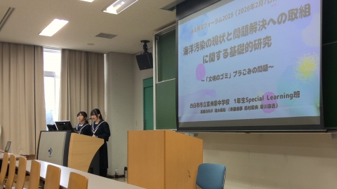 At the Mie Inquiry Forum 2025 – Oral Presentation Division, our school presented seventh in the session. In the session our school participated in, there were five presentations from high schools and three from junior high schools. Our school gave the seventh presentation titled: “A Basic Study on the Current State of Marine Pollution and Efforts Toward Problem Solving — The Issue of Plastic Waste as ‘Waste of Civilization.’”