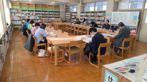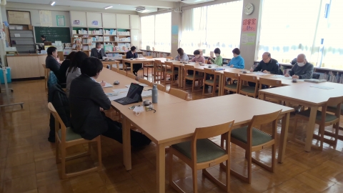 On the morning of Monday, February 9, it was a clear morning after the snow. We held the 7th Community School Management Council Meeting in our school library. The Community School (CS) of Tomisuhara Junior High School is held jointly with Tomisuhara Elementary School.