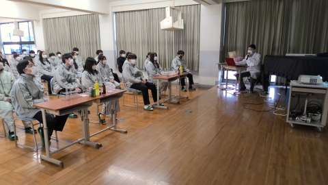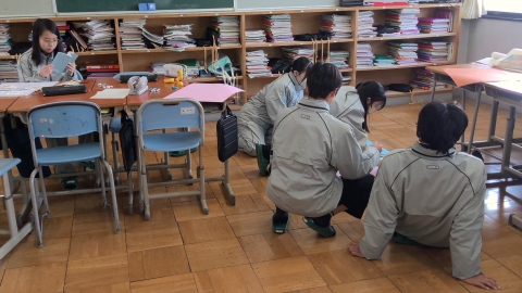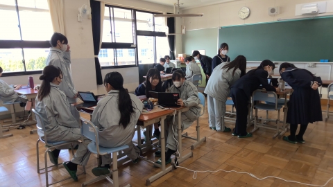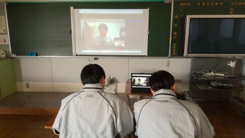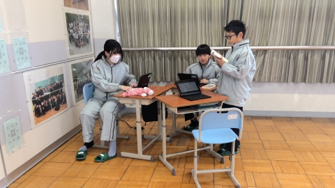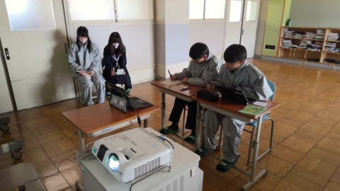The photo below shows students asking questions online to a staff member from the Yokkaichi City Crisis Management Division.