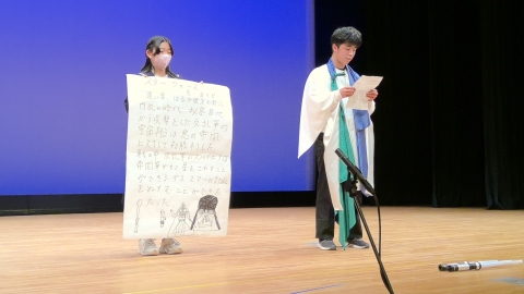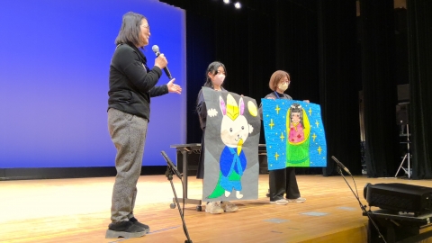 तलको तस्बिरमा विद्यार्थीहरूले योक्काइची सिटी विपद् व्यवस्थापन विभागका कर्मचारीसँग अनलाइन प्रश्न सोधिरहेको देखाइएको छ।