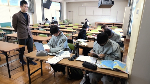 After school on Wednesday, February 18, some students were studying independently in the audiovisual room in preparation for the end-of-year examinations. For first- and second-year students, the end-of-year examinations, which are the final regular tests of this school year, will be held next week from Tuesday, February 24 to Thursday, February 26. This week, two after-school question-and-answer sessions have been scheduled to help students prepare for the tests.