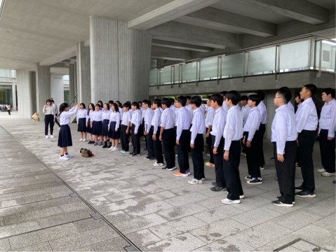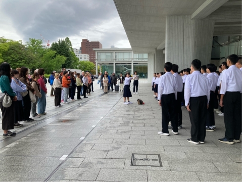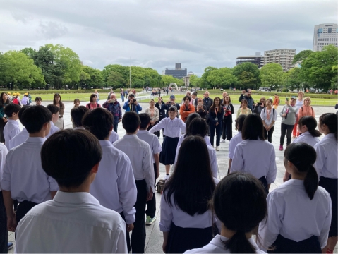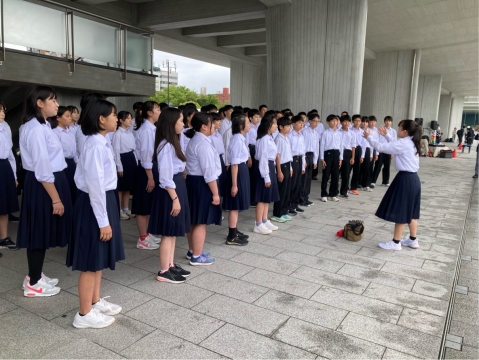 広島平和記念資料館のピロティでSMAPのTriangleを歌いました。
