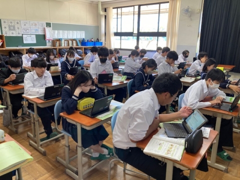 3年生の英語です。英語で英語を教えるスタイルの授業です。みんなよく聞き取れています。ところで、Passive Voiceって何のことかわかりますか?