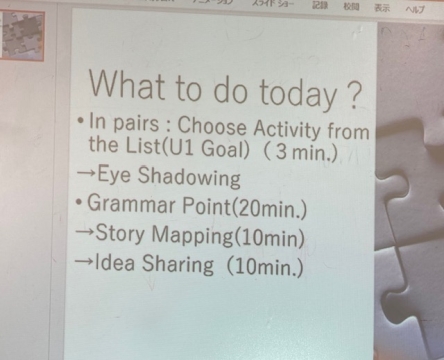 「文法の勉強が終わったら、いつものようにストーリーマッピング。」というようなことを、全部英語で指示しています。
