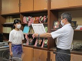 伝達表彰も放送でのお知らせしましたが、校長室にて、校長先生より、賞状を手渡していただきました。一枚一枚読み上げると、一人ひとりが本当によく頑張ったことがわかりました。また、ポスター等は校内に掲示する予定です。2学期も楽しみです。