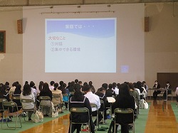家庭での生活や進路にむけての心構えなどをお伝えしました。進路は一人ひとりが自分と向き合い、自分の目標に向けた道を決めていきます。家庭でもたくさん話をしていただきたいと思います。