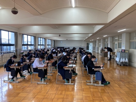 3年生(全国学力・学習状況調査)1階ホールにて