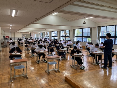 4月18日(木)、3年生が全国一斉に実施する「全国学力・学習状況調査」に取り組んでいます。また、2年生と1年生は三重県教育委員会が実施する「みえスタディチェック」に取り組んでいます。