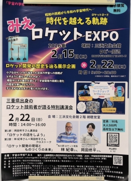 We received a poster for the “Mie Rocket EXPO,” organized by Uchu no Gakko Mie (Space School Mie), from Mr. Ito, the principal of Uchu no Gakko Mie.